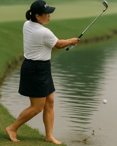 18번 홀 두 번째 샷. 공이 연못에 빠졌다.